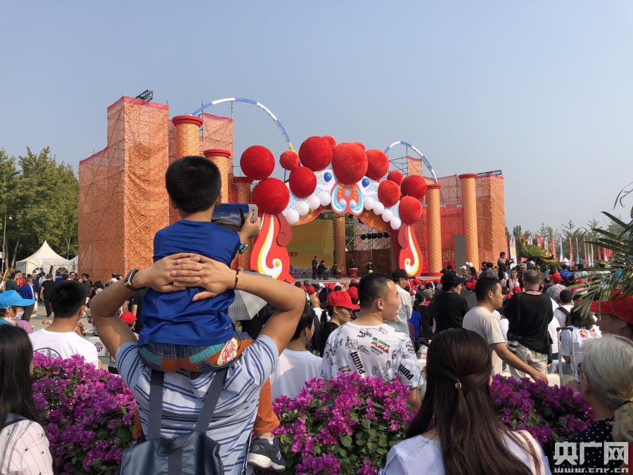 10月2日,2019中國戲曲文化周在北京園博園盛大開幕,此次活動吸引了大量游客前來觀賞。圖為2019中國戲曲文化周在北京園博園3號門中心舞臺舉辦了開幕式。圖為游客觀看開幕式。(央廣網(wǎng)記者 方永磊 攝)