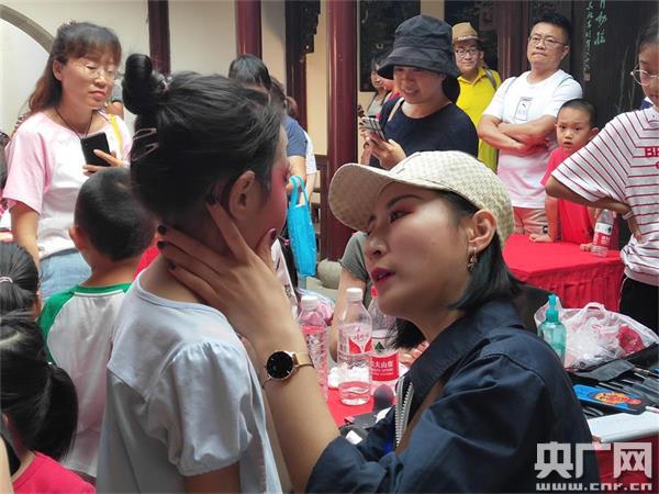 圖為工作人員免費(fèi)為游客畫(huà)戲妝。(央廣網(wǎng)實(shí)習(xí)記者李帆攝)