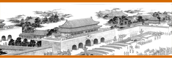 《京門九衢圖》取材于康乾盛世的北京城,以中國(guó)傳統(tǒng)繪畫“工兼寫”的手法,藝術(shù)地再現(xiàn)了六朝古都北京“內(nèi)九外七皇城四”二十個(gè)城門樓,以城墻和護(hù)城河為紐帶聯(lián)結(jié)起來的建筑格局,展現(xiàn)清王朝鼎盛時(shí)期(康乾盛世)的政治、軍事、經(jīng)濟(jì)、文化、建筑、體育、民俗等方面壯麗廣闊的場(chǎng)景面貌。