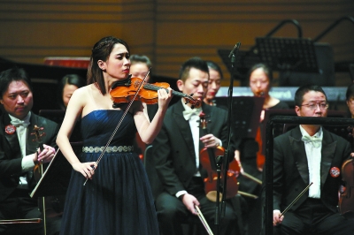 經(jīng)過了昆明聶耳交響樂團(tuán)、中國(guó)愛樂樂團(tuán)、北京交響樂團(tuán)、中國(guó)交響樂團(tuán)的演奏后,馬拉松的上半程即將收尾,而在這時(shí),演出意外地迎來了一個(gè)小高潮。今年,為了鼓勵(lì)更多青年藝術(shù)家的創(chuàng)作,國(guó)際音樂節(jié)設(shè)立了“青年音樂家獎(jiǎng)——雀巢杯”。在昨天的交響馬拉松上,這個(gè)獎(jiǎng)項(xiàng)公開了首位獲獎(jiǎng)?wù)摺嗄晷√崆偌伊Q。上臺(tái)領(lǐng)獎(jiǎng)時(shí),身穿一襲寶藍(lán)色長(zhǎng)裙的柳鳴說著說著便激動(dòng)地哭了起來!皩(duì)不起,我真的太愛哭了。”這個(gè)率真坦誠(chéng)的姑娘一邊抹著眼淚,一邊說著感謝的致辭,觀眾們用善意的掌聲來鼓勵(lì)她,站在她身邊的余隆也忍不住笑著出言安慰。短暫的休息后,柳鳴再度上臺(tái),與上海交響樂團(tuán)合作了《梁!泛婉R克思·布魯赫的《G小調(diào)第一小提琴協(xié)奏曲》。此時(shí)的柳鳴完全沒有了剛才哭成淚人兒的孩子模樣,她全情投入,技巧嫻熟,尤其在演奏《梁!窌r(shí),柳鳴的詮釋帶著女孩特有的敏感和細(xì)膩。而《梁!纷鳛橐恢дQ生在上海的樂曲,在上交的演繹下,也充滿了另外一種別樣的婉轉(zhuǎn)風(fēng)情。
