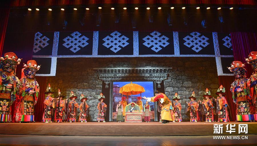 10月25日,演員在表演大型舞臺劇《朗薩雯波》。當(dāng)日,大型舞臺劇《朗薩雯波》在西藏自治區(qū)藏劇團(tuán)與觀眾見面。這是傳統(tǒng)八大藏戲之一的《朗薩雯波》在完成舞臺化、數(shù)字化之后首次亮相。除拉薩外,還將在日喀則、山南等地進(jìn)行展演。2013年起,為了突破傳統(tǒng)八大藏戲在發(fā)展中遇到的瓶頸,西藏自治區(qū)藏劇團(tuán)啟動了八大傳統(tǒng)藏戲舞臺化項目。幾年來從舞蹈、服裝、道具等方面進(jìn)行重新打造,先后完成了《白瑪文巴》、《諾桑法王》、《卓娃桑姆》三部劇的舞臺化工作。新華社記者 晉美多吉 攝