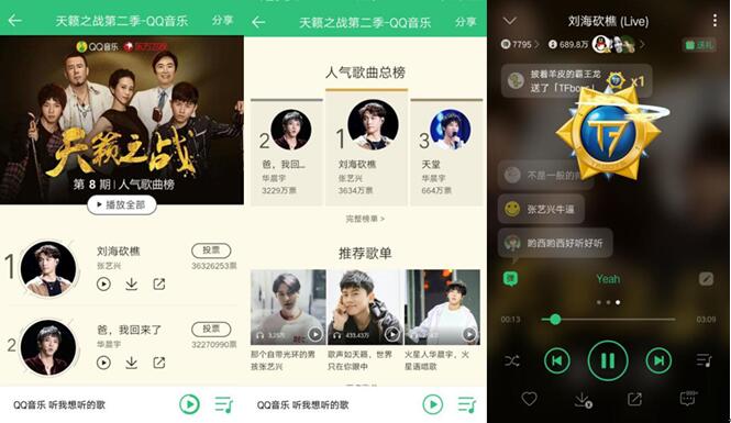 上周日的《天籟之戰(zhàn)》第二季第八期節(jié)目再創(chuàng)收視新高,天籟導師團更是爆發(fā)出超強的“音樂能量”,在與素人的對戰(zhàn)中獲得“碾壓式”全勝。其中,大魔王華晨宇“唱說式”《爸,我回來了》引發(fā)現(xiàn)場內(nèi)外“情懷殺”;“X嘉賓”張藝興顛覆性地民歌改編《劉?抽浴犯恰八嚒斌@四座。作為節(jié)目的專享音頻合作及互動平臺,騰訊音樂娛樂旗下三大平臺QQ音樂、酷我音樂、酷狗音樂也再度用零時差專輯全程記錄了當晚不斷迸發(fā)的創(chuàng)意改編,并通過榜單、評論、彈幕等創(chuàng)意互動,吸引了大批音樂愛好者為喜愛的歌手和作品應援。