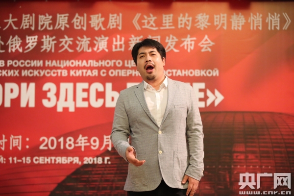 9月6日,中國(guó)國(guó)家大劇院交流演出團(tuán)飛抵俄羅斯,在莫斯科中國(guó)文化中心召開(kāi)新聞發(fā)布會(huì),為廣大媒體介紹本次巡演亮點(diǎn)。中國(guó)國(guó)家大劇院副院長(zhǎng)趙佳琛、俄羅斯亞歷山大紅旗模范歌舞團(tuán)團(tuán)長(zhǎng)兼藝術(shù)總監(jiān)功勛文藝工作者上校蓋納季·薩切紐克、中國(guó)國(guó)家大劇院音樂(lè)藝術(shù)總監(jiān)呂嘉、歌劇《這里的黎明靜悄悄》作曲唐建平、該劇主演張揚(yáng)、徐曉英、巴揚(yáng)演奏家阮明園、亞歷山大紅旗歌舞團(tuán)歌唱演員瓦吉姆·阿南耶夫、馬克西姆·馬克拉科夫出席發(fā)布會(huì)。