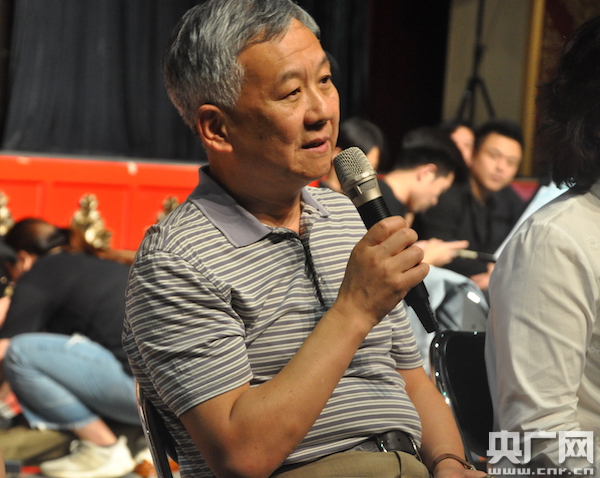 圖為國(guó)家京劇院黨委書記宋晨介紹《生死契約》創(chuàng)作情況 央廣網(wǎng)記者王子衿攝