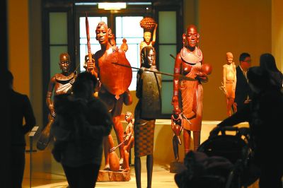 12月12日,中國美術(shù)館“生命之樹——中國美術(shù)館藏非洲木雕藝術(shù)展”展覽現(xiàn)場。今年,該館通過策劃風(fēng)格各異的展覽,為首都市民營造出濃厚的藝術(shù)氛圍。本報記者 饒強(qiáng)攝