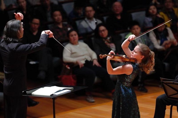 央廣網(wǎng)北京3月15日消息 3月14日晚,指揮家弗拉基米爾·尤洛夫斯基與小提琴演奏家朱莉婭·費(fèi)舍爾,攜手英倫交響名團(tuán)倫敦愛樂樂團(tuán),在國家大劇院音樂廳舞臺(tái),激情碰撞音樂花火,為觀眾帶來一場回味不盡的“夢幻交響”。