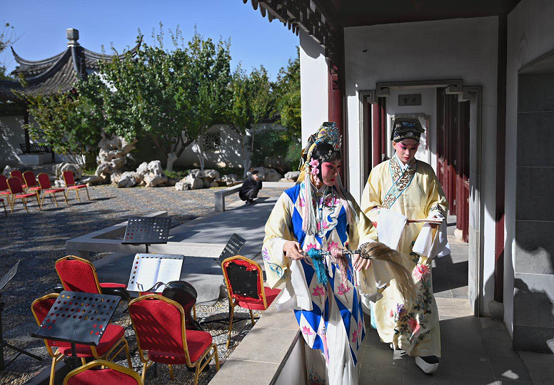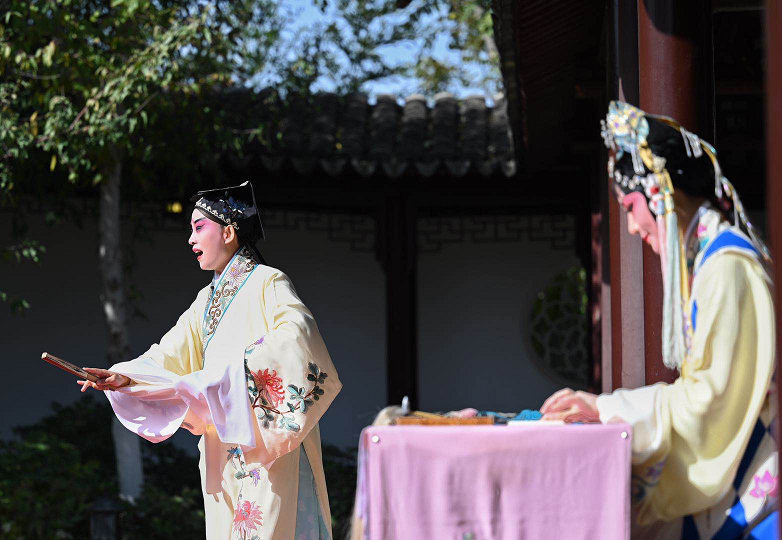 (“憶江南”園中,北方昆曲劇院正在進行演出彩排。豐臺區(qū)委宣傳部供圖,央廣網(wǎng)。)