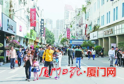 昨日,廈門陽光燦爛,氣候溫和,地震發(fā)生時(shí),中山路上行人如常。(記者姚凡攝)
