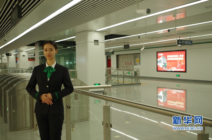 地鐵2號線的工作人員身著“榕城綠”服飾,與1號線的“幸福紅”相互呼應(yīng)。新華網(wǎng) 張婷婷 攝