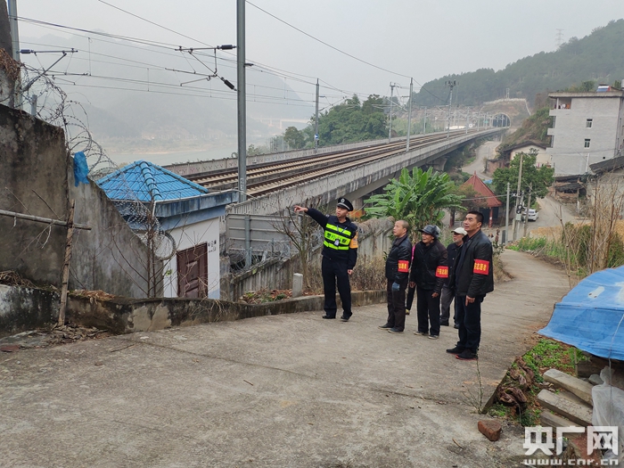 民警帶領(lǐng)線路聯(lián)防隊(duì)員開展線路巡查(央廣網(wǎng)發(fā) 福州鐵路公安處供圖)