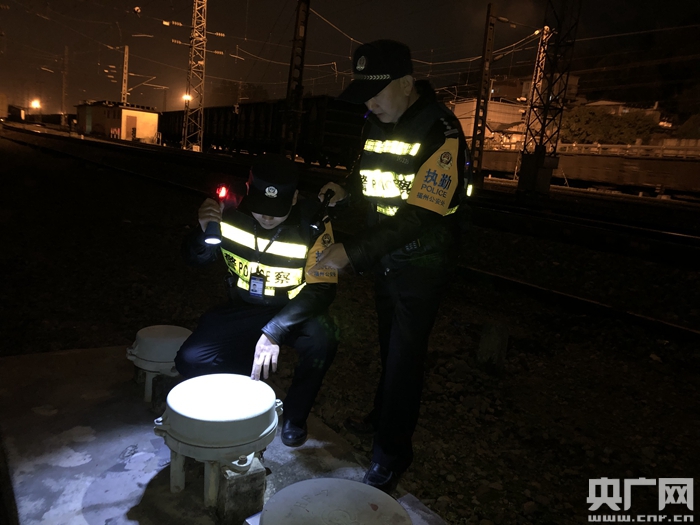 民警正在開展夜間清查(央廣網(wǎng)發(fā) 福州鐵路公安處供圖)