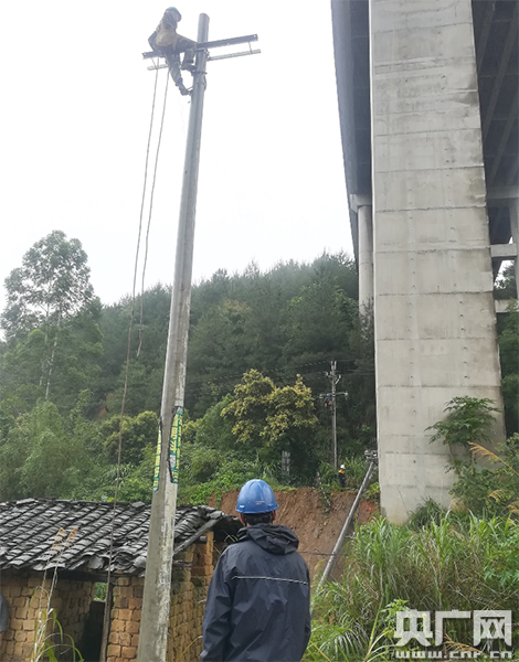 受連續(xù)強降雨影響,6月11日晚,永定多地發(fā)生了不同程度的山體滑坡、塌方,導致部分供電線路不同程度受損。6月12日凌晨1時許,在撫市鎮(zhèn)基安村河道旁邊,10千伏基冷線所處路基多處塌方,導致基冷線21號桿橫懸在河面上,扯動了前后兩根電桿傾斜。為保證客戶用電需求,6月12日凌晨2點,該公司撫市供電所搶修人員將10千伏基冷線轉(zhuǎn)由基中聯(lián)絡線供電。“首先通過鋼絲繩掛住電桿,再用腳樁、鋼絲繩、鏈條固定,防止電桿繼續(xù)往下滑。并在保證安全的情況下,把線路一條一條地拉上來!睋崾泄╇娝彼L黃偉民介紹道。由于線路沒有斷裂,搶修人員經(jīng)過現(xiàn)場勘察、布置安全措施后,決定兵分兩路,一邊新立電桿,一邊組織人員將橫懸的21號桿的3條供電線路取下掛接在新電桿上。只見搶修人員卷起褲腳,一步一步艱難地蹚過湍急的河流到達對岸,其中一名搶修人員爬上桿頭施工作業(yè),另外一名人員站在水中配合桿上的人員取下瓷瓶、橫擔以及供電線路;其他人員在路面上布置安全措施、拉穩(wěn)繩索、固定腳樁……搶修工作緊張而有序。雨水持續(xù)不斷,搶修人員衣服已經(jīng)濕透,早已分不清那是汗水還是雨水。