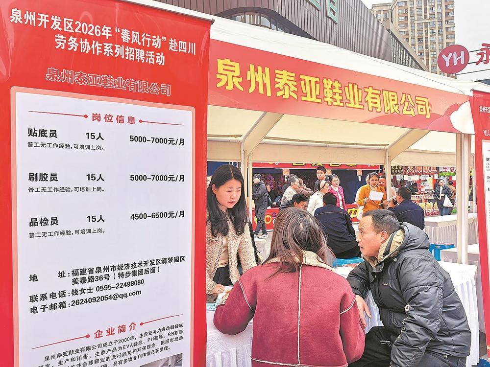 繼春節(jié)前赴江西等地開展勞務協(xié)作后,泉州開發(fā)區(qū)搶抓春季用工黃金窗口期,于3月1日至4日,組織10余家重點企業(yè)跨越千里,深入四川省達州河市鎮(zhèn)、廣安武勝縣,將專場招聘會辦在鄉(xiāng)鎮(zhèn)街頭,把優(yōu)質(zhì)崗位精準送到群眾家門口。泉州開發(fā)區(qū)產(chǎn)業(yè)根基扎實,用工需求旺盛,長期以來都是達州、廣安等地務工人員的重要就業(yè)目的地。此次跨省送崗,既是兩地深厚情誼的延續(xù),更是搭建長效協(xié)作平臺、為區(qū)域協(xié)同發(fā)展注入新動能的關鍵舉措。