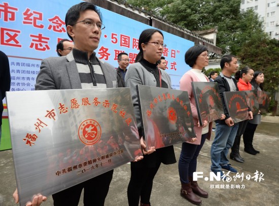 12月4日,福州市委文明辦、團(tuán)市委在鼓樓區(qū)鼓東街道中山社區(qū)聯(lián)合舉辦紀(jì)念“12·5國(guó)際志愿者日”暨社區(qū)志愿服務(wù)聯(lián)盟成立儀式活動(dòng)。活動(dòng)現(xiàn)場(chǎng),主辦方為12個(gè)“福州市志愿服務(wù)示范社區(qū)”授牌,并為“綠化福州”志愿服務(wù)隊(duì)授旗。各城區(qū)志愿者代表參觀了志愿服務(wù)示范社區(qū)風(fēng)采展,觀摩“學(xué)雷鋒一條街”現(xiàn)場(chǎng)志愿服務(wù)活動(dòng)。