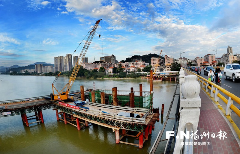 新洪塘大橋拓寬改建,計(jì)劃分為北側(cè)、中間、南側(cè)三部分施工,將先建設(shè)新洪塘大橋的北側(cè)和南側(cè)各1/3幅,在此過程中,中間老洪塘大橋依然保持通行。待北側(cè)橋和南側(cè)橋完工并臨時(shí)通車后,再拆除老洪塘大橋并建設(shè)中間1/3幅,最終實(shí)現(xiàn)新洪塘大橋雙向8車道通行。(福州日?qǐng)?bào)記者 謝星星/文 葉義斌/攝)