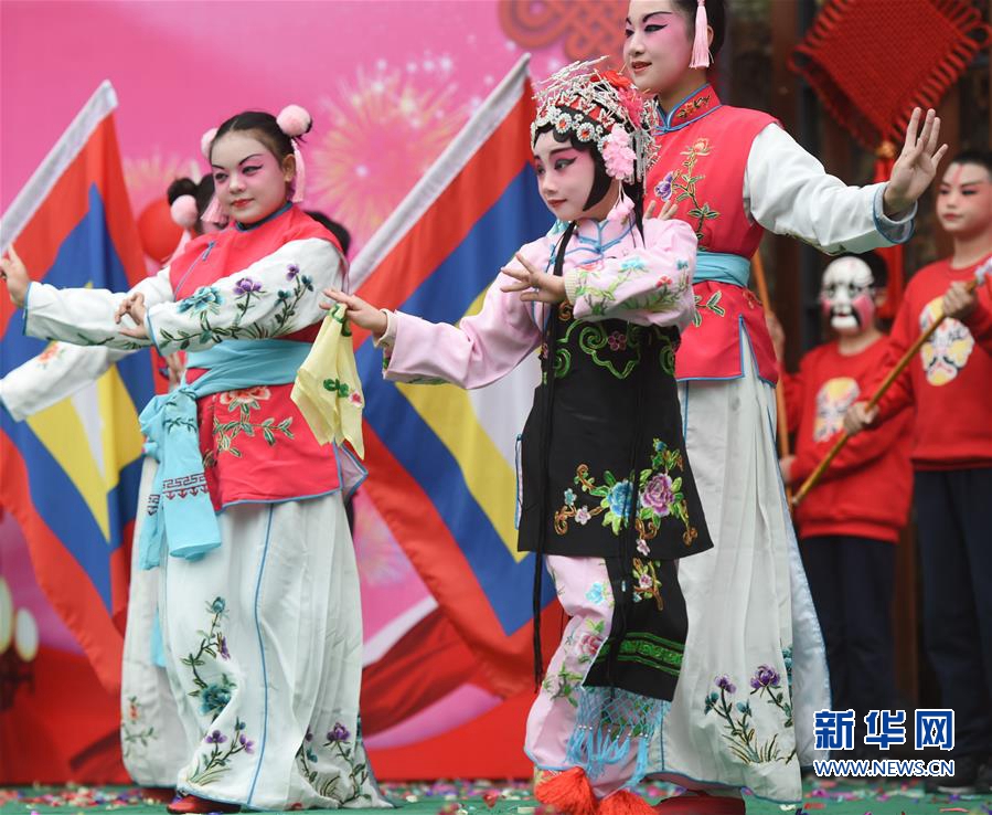 12月28日,福州市烏山小學(xué)學(xué)生在聯(lián)歡會上表演京劇。新華社記者 宋為偉 攝