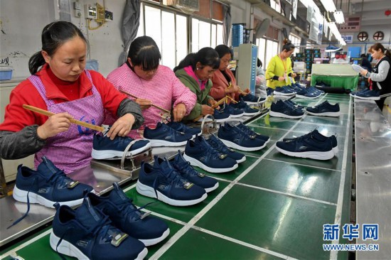 2月21日,莆田市一家鞋業(yè)有限公司工人在生產(chǎn)運(yùn)動(dòng)鞋。