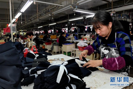 2月21日,莆田市一家服飾股份有限公司工人在生產(chǎn)服裝。 新華社記者 張國俊 攝