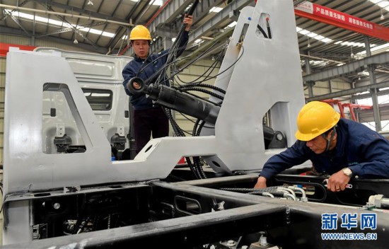 2月21日,莆田市一家機(jī)械有限公司工人在生產(chǎn)多功能抽吸車。 新華社記者 張國俊 攝