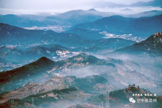 往南安方向拍攝,云霧有的攔在山腰,有的正翻越山峰。