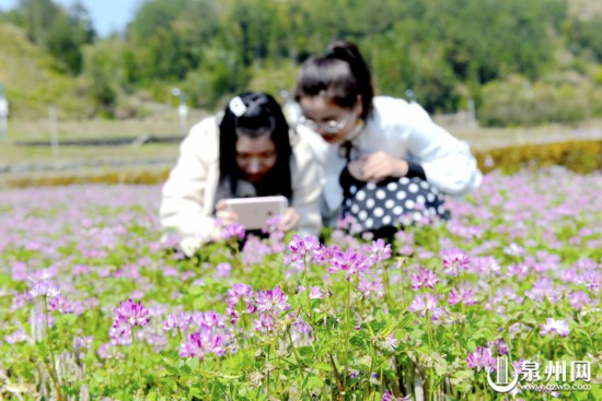 近日,在德化縣美湖鎮(zhèn)小湖村的田間地頭,百畝紫云英悄然綻放,一株株紫云英,綠色、紫色、白色相間,隨風搖曳,絢爛奪目,美不勝收,吸引了眾多游客觀賞拍照。“這百畝紫云英盛開,猶如漫天紫霞飄落人間,既點綴了美麗的鄉(xiāng)村,而且能培肥地力,改善土地耕作性能。”德化縣美湖鎮(zhèn)政府的工作人員蘭興攀表示,近年來,美湖鎮(zhèn)培育種植百畝紫云英種植觀光基地,積極融入全縣發(fā)展全域旅游戰(zhàn)略,提振鄉(xiāng)村振興,致力將千年樟樹王→金書樓→美湖公社→厚房祖厝群→大龍湖漂流碼頭等景點串連成線,打造生態(tài)休閑旅游精品線。(通訊員 吳有森 記者 陳明華/攝影報道)