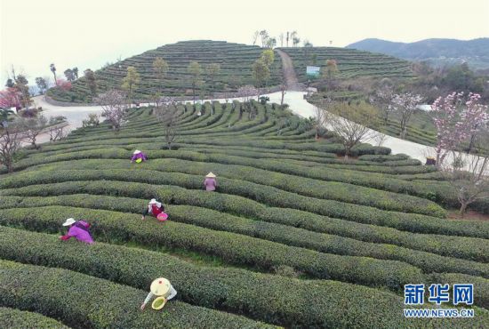 3月21日,茶農(nóng)在福鼎市佳陽畬族鄉(xiāng)后陽村的鼎白茶園采摘茶青(無人機(jī)拍攝)。 福建省福鼎市白茶種植歷史悠久。近年來福鼎市把茶產(chǎn)業(yè)作為精準(zhǔn)脫貧和鄉(xiāng)村振興的戰(zhàn)略性產(chǎn)業(yè)來發(fā)展,通過多項舉措推動茶產(chǎn)業(yè)轉(zhuǎn)型升級,2018年全市茶園面積達(dá)20.3萬畝,茶葉總產(chǎn)量2.7萬噸,涉茶總產(chǎn)值達(dá)56.88億元,有效帶動當(dāng)?shù)剜l(xiāng)村產(chǎn)業(yè)振興和農(nóng)民增收致富。 新華社記者林善傳攝