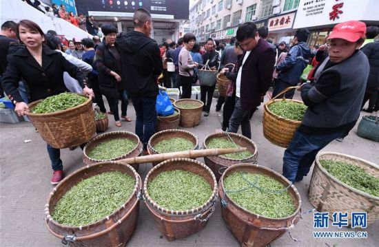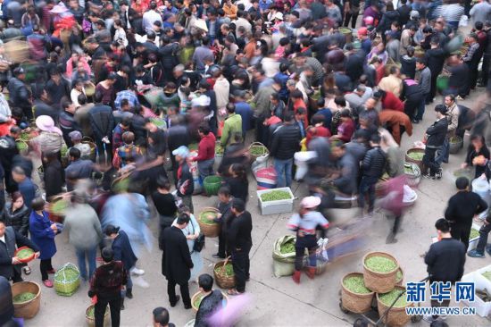 3月21日,茶農(nóng)在福鼎市點頭鎮(zhèn)的福鼎白茶交易市場售賣茶青。 福建省福鼎市白茶種植歷史悠久。近年來福鼎市把茶產(chǎn)業(yè)作為精準(zhǔn)脫貧和鄉(xiāng)村振興的戰(zhàn)略性產(chǎn)業(yè)來發(fā)展,通過多項舉措推動茶產(chǎn)業(yè)轉(zhuǎn)型升級,2018年全市茶園面積達(dá)20.3萬畝,茶葉總產(chǎn)量2.7萬噸,涉茶總產(chǎn)值達(dá)56.88億元,有效帶動當(dāng)?shù)剜l(xiāng)村產(chǎn)業(yè)振興和農(nóng)民增收致富。 新華社記者林善傳攝