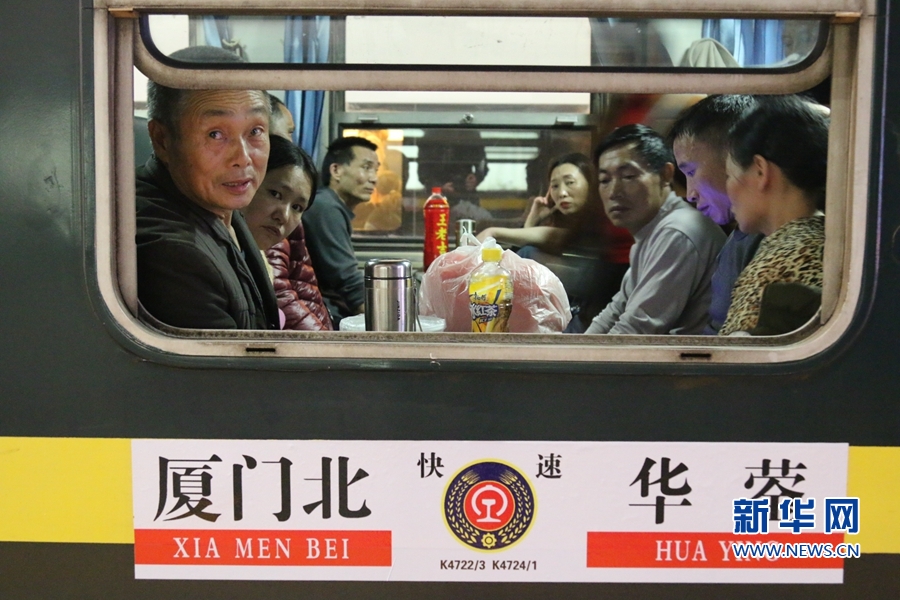 1月10日晚上6點(diǎn)29分,廈門北站開出首班外來務(wù)工人員返鄉(xiāng)專列。這是旅客在車上等候發(fā)車。新華網(wǎng)發(fā)(萬宇 攝)