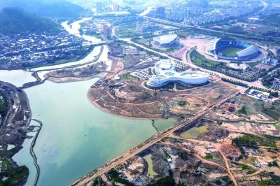 ▲ 福州最大的人工湖項目——閩侯旗山湖正在加快建設,一期有望在今年內(nèi)建成開放。 林熙 攝