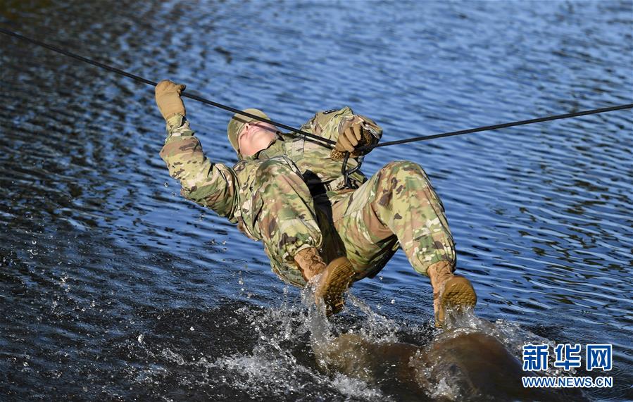 11月18日,在美國俄勒岡州錫賽德的國民警衛(wèi)隊拉里葉軍營,一名美軍士兵參加單繩橋救援演練。中美兩軍人道主義救援減災(zāi)聯(lián)合實兵演練當(dāng)日進(jìn)入第三天。此次聯(lián)合演練中美兩軍共派出200余人參加。新華社記者殷博古攝 -