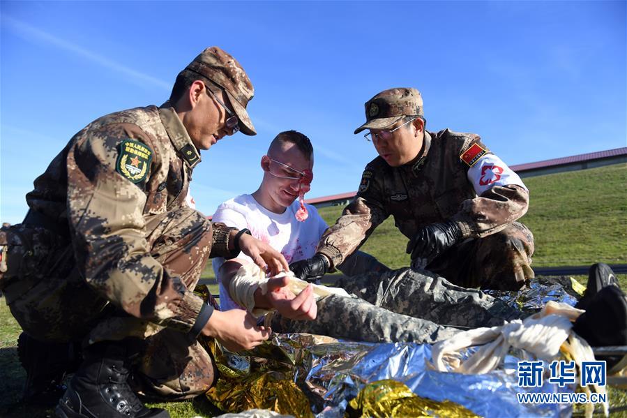 11月18日,在美國俄勒岡州錫賽德的國民警衛(wèi)隊拉里葉軍營,中美兩軍參演人員一同救治“傷員”。中美兩軍人道主義救援減災(zāi)聯(lián)合實兵演練當(dāng)日進(jìn)入第三天。此次聯(lián)合演練中美兩軍共派出200余人參加。新華社記者殷博古攝 -