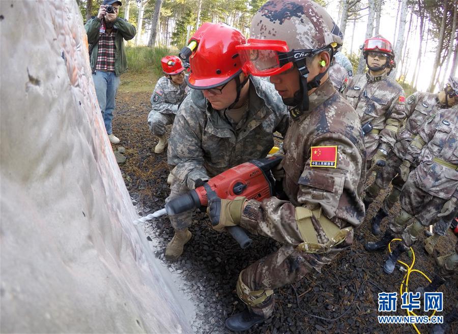 11月18日,在美國俄勒岡州錫賽德的國民警衛(wèi)隊拉里葉軍營,中美兩軍參演人員共同演練狹小空間救援。中美兩軍人道主義救援減災(zāi)聯(lián)合實兵演練當(dāng)日進(jìn)入第三天。此次聯(lián)合演練中美兩軍共派出200余人參加。新華社記者殷博古攝 -