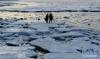 1月6日,游客在渤海大連夏家河子海域的海冰上游玩。受持續(xù)降溫影響,渤海大連北部海域海冰范圍擴大,在北風(fēng)和潮汐的作用下,大量海冰涌上岸邊,形成奇特的極地冰原景觀。 新華社發(fā)(呂文正 攝) -