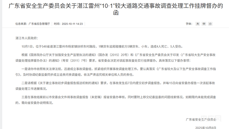 廣東省安委會掛牌督辦湛江一起道路交通事故
