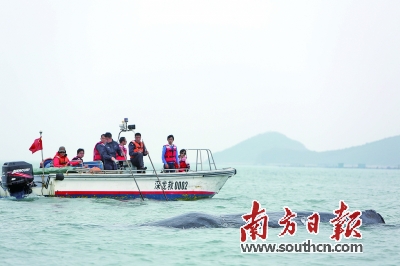同時,現(xiàn)場人員成立現(xiàn)場救護指揮部,統(tǒng)一協(xié)調(diào)指揮救護行動;并由中山大學(xué)海洋科學(xué)院方亮副研究員、廣東海洋大學(xué)深圳研究院廖寶林、深圳海洋世界魏鵬程、梁文兵等海洋生物專家組成的救護專家組立即研究緊急救護措施。