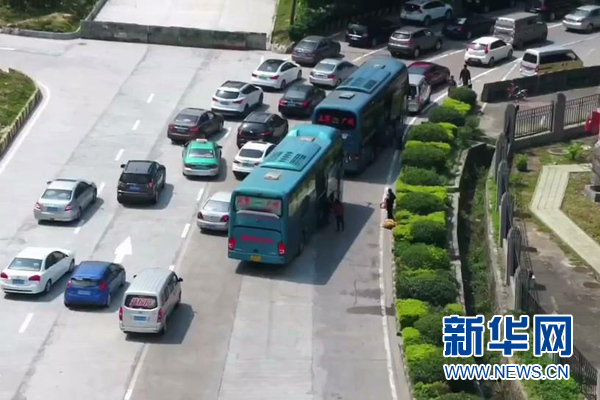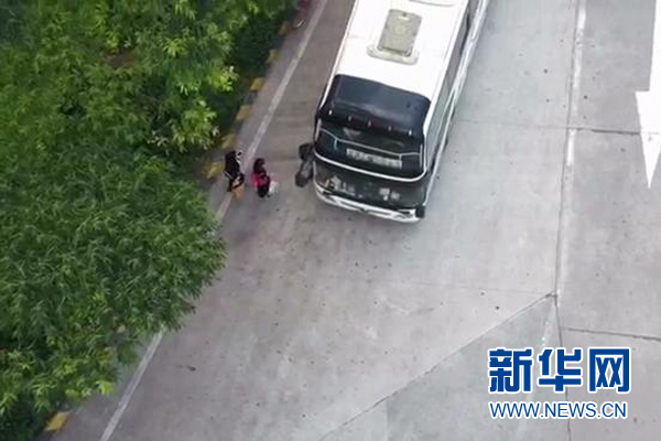 無人機(jī)拍攝客車違章行為視頻的截圖。新華網(wǎng)發(fā)
