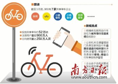 據(jù)南方日?qǐng)?bào)報(bào)道,4月6日,深圳交通運(yùn)輸委、城市管理局、公安交警局聯(lián)合正式發(fā)布《關(guān)于鼓勵(lì)規(guī)范互聯(lián)網(wǎng)自行車發(fā)展的若干意見(jiàn)》(以下簡(jiǎn)稱《意見(jiàn)》)!兑庖(jiàn)》要求企業(yè)投放規(guī)模與承載能力、出行需求和管理水平等相適應(yīng),并要求企業(yè)向相關(guān)部門提供注冊(cè)及車輛使用數(shù)據(jù)。另外,不強(qiáng)制要求企業(yè)在本地進(jìn)行商事登記,以及由交警和城管部門按區(qū)域負(fù)責(zé)停放秩序管理。