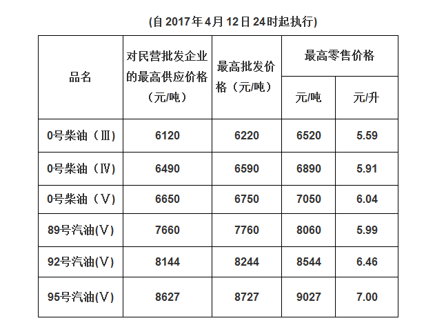 省發(fā)改委表示,根據(jù)國(guó)家成品油價(jià)格形成機(jī)制,結(jié)合近一段時(shí)期國(guó)際市場(chǎng)油價(jià)變化情況,國(guó)家發(fā)展改革委決定自2017年4月12日24時(shí)起提高國(guó)內(nèi)成品油價(jià)格,即在現(xiàn)行價(jià)格的基礎(chǔ)上,我省汽、柴油價(jià)格每噸分別提高200元和190元,平均每升提高約0.16元。調(diào)整后,我省成品油最高銷售價(jià)格可登錄網(wǎng)址http://www.gddrc.gov.cn/zwgk/tzgg/jggg/201704/t20170412_390885.html查閱。