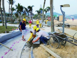 昨日,記者來到鹽田區(qū)大梅沙海濱公園,公園處處都是施工景象,工人們在鋪設(shè)路面、安裝新的出入閘口,新的廁所、沖沙池等便民設(shè)施也在加緊施工當(dāng)中。
