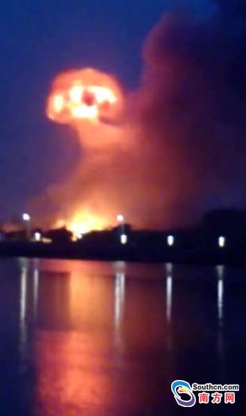 “場面非常嚇人,不僅火勢很猛,而且連接響起爆炸聲,聲音很響!焙槊锋(zhèn)望沙路附近的居民在家中,被猛烈的爆炸聲嚇倒了,當(dāng)跑出門口看個究竟時,眼前不遠(yuǎn)處燃起了直沖云霄的熊熊大火,火光尤其刺眼。當(dāng)大家正想打聽是哪個工廠發(fā)生火災(zāi)時,爆炸聲接連響起,讓大家心里為之一驚。