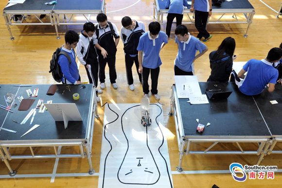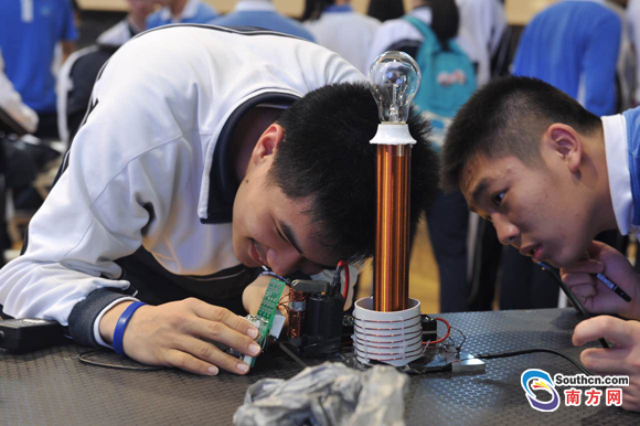 南方網(wǎng)訊 在自習(xí)課上如果說(shuō)話聲太大,一款高分貝提醒器將作出“警示”;教室內(nèi)的溫度如果過(guò)高或過(guò)低,智能化空調(diào)將匹配調(diào)節(jié)……這些“神器”都出自深圳實(shí)驗(yàn)學(xué)校高中部學(xué)生之手,這里的高中生們善于對(duì)生活進(jìn)行觀察和思考,喜歡做小發(fā)明、小創(chuàng)造,并用動(dòng)手實(shí)踐將創(chuàng)意轉(zhuǎn)化為實(shí)物。而這與學(xué)校重視科技創(chuàng)新以及開(kāi)發(fā)多層次、系統(tǒng)的科技創(chuàng)新課程、活動(dòng)密切相關(guān)。深圳實(shí)驗(yàn)學(xué)校高中部科技節(jié)日前落下帷幕,該校也首次對(duì)外系統(tǒng)介紹其科技創(chuàng)新實(shí)踐教育情況。