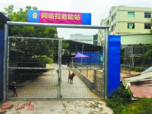 昨日上午許,在深圳市龍崗區(qū)園山街道環(huán)山路與陳屋路交叉口附近,記者找到了卓瑪夫婦收養(yǎng)流浪狗的破舊廠房。廠房約三層高,周邊用鐵絲網(wǎng)圍了起來,門口掛著“阿哈拉救助站”的牌子。