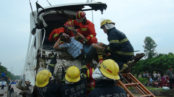 隨即消防官兵立即展開了救援。但由于大貨車沉重的車廂壓住了小車車頂,傾斜的沙石又將小車掩埋了大半,救援工作非常艱難。隨后,交警部門緊急調(diào)集多輛吊車,先后移動小車與大貨車,再經(jīng)過消防官兵破拆車輛后,才將各車被困人員救出。但經(jīng)現(xiàn)場醫(yī)護(hù)人員搶救后診斷,貨車司機(jī)與小車三人均已全部死亡。