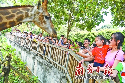 28日,深圳野生動物園里的長頸鹿吸引眾多游客駐足觀賞。記者 朱洪波 攝