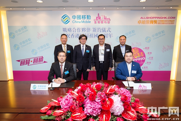 央廣網(wǎng)香港6月26日消息(記者周偉琪)中國(guó)移動(dòng)香港與“全港購(gòu)物節(jié)”戰(zhàn)略合作伙伴簽約儀式并“慶祝香港回歸祖國(guó)20周年”于日前隆重舉行。雙方本著“互惠互利、實(shí)現(xiàn)雙贏”的宗旨,開展多層次、多領(lǐng)域的全方位合作,攜手推動(dòng)香港成為智能城市,支持本地流動(dòng)通訊業(yè)和零售業(yè)發(fā)展,為廣大市民和旅客提供更多優(yōu)質(zhì)服務(wù)。