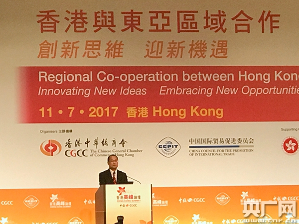 央廣網(wǎng)香港7月11日消息(記者周偉琪)香港中華總商會與中國國際貿(mào)易促進(jìn)會于7月11日在香港會議展覽中心聯(lián)合主辦第三屆《香港高峰論壇》·作為為慶賀回歸20周年的主要活動之一,以“香港與東亞區(qū)域合作:創(chuàng)新思維·迎新機(jī)遇”為主題,匯聚中國內(nèi)地及東亞國家多位部長級官員、特區(qū)政府主要官員、本地及東亞地區(qū)商界領(lǐng)袖、專家學(xué)者等,共同分析東亞區(qū)域經(jīng)濟(jì)最新發(fā)展,探討區(qū)域經(jīng)貿(mào)合作前景和機(jī)遇,以及香港在促進(jìn)區(qū)域合作的角色定位。香港特區(qū)政府行政長官林鄭月娥女士、中聯(lián)辮副主任殷曉靜、外交部駐港特派員公署謝鋒特派員應(yīng)邀擔(dān)任主禮嘉。