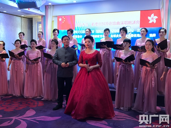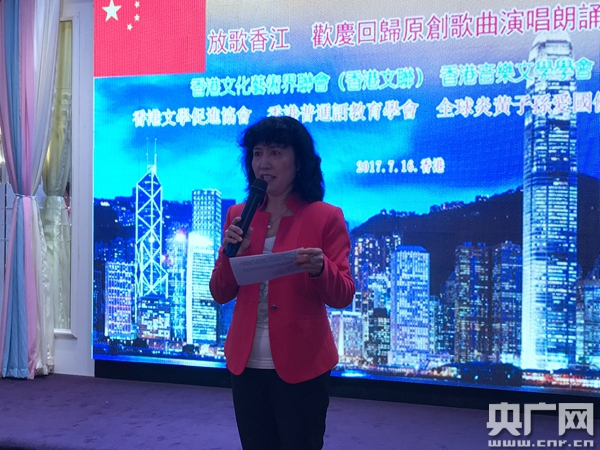 央廣網(wǎng)香港7月16日消息(記者劉志宏 周偉琪)由香港文化藝術(shù)界聯(lián)會(huì)(香港文聯(lián))和香港音樂文學(xué)學(xué)會(huì)主辦,香港中華文化總會(huì)、香港文學(xué)促進(jìn)協(xié)會(huì)、香港普通話教育學(xué)會(huì)和香港紅馬讀書會(huì)協(xié)辦的“放歌香江慶祝回歸原創(chuàng)歌曲歌詞演唱朗誦會(huì)”于今天在香港成功舉行。中央政府駐港聯(lián)絡(luò)辦宣傳文體部朱挺副部長、香港立法會(huì)馬逢國議員,《紫荊雜志》楊勇先生社長兼總編,香港文學(xué)促進(jìn)協(xié)會(huì)創(chuàng)會(huì)會(huì)長張?jiān)妱υ娂、香港中華文化總會(huì)副會(huì)長皇甫星、深圳市作協(xié)評(píng)論家周思明先生,珠海市原創(chuàng)音樂協(xié)會(huì)合唱團(tuán)藝術(shù)總監(jiān)龍律成先生等港、深、珠的文學(xué)藝術(shù)界的120多人出席了本次活動(dòng)。