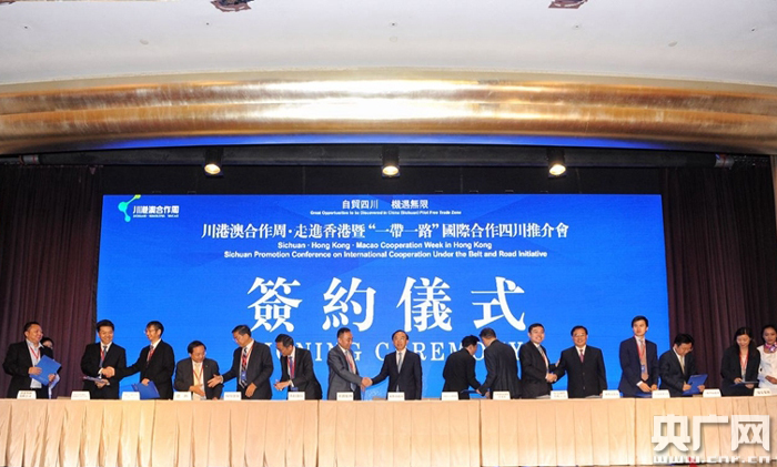 央廣網香港8月22日消息(記者周偉琪)8月21日至25日“川港澳合作周”在香港、澳門舉辦,此次活動旨在進一步深化四川省與港澳的合作友誼、深化三地經貿合作,共推“一帶一路”建設,開創(chuàng)互利共贏的新局面。今天上午,以“自貿四川機遇無限”為主題的川港澳合作周-走進香港暨“一帶一路”國際合作四川推介會在香港舉行。記者了解到,本場推介會由四川省人民政府主辦、外交部駐香港特派員公署支持,會議以“自貿四川 機遇無限”為主題,將全面推介四川發(fā)展概況及川港合作成果,重點推出四川自貿試驗區(qū)及成都發(fā)展機遇,借力香港推動川港雙方“一帶一路”建設,聽取香港政商界與四川合作意見建議,全面深化川港合作,推動港資企業(yè)來川擴大投資,推進一批項目簽約。