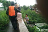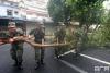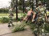 廣東邊防六支隊沙頭角模范中隊官兵冒雨清理中英街上被吹倒的樹木 -