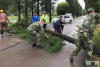 江門市公安邊防官兵與交警部門在崖門鎮(zhèn)緊急清理被吹倒的樹木 -